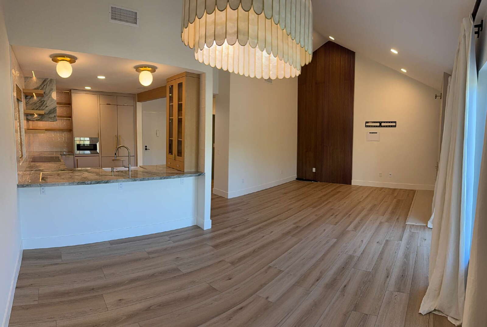 Step inside to find no shared walls, quiet surroundings, and a bright single-level layout on the second (top) floor of the building. The chef-inspired kitchen features stunning Quartz counters, a custom built-in ZLINE fridge/freezer, a custom built-in beverage fridge, and an open pass-through bar perfect for entertaining. LVP flooring flows throughout the home, complementing the modern design.